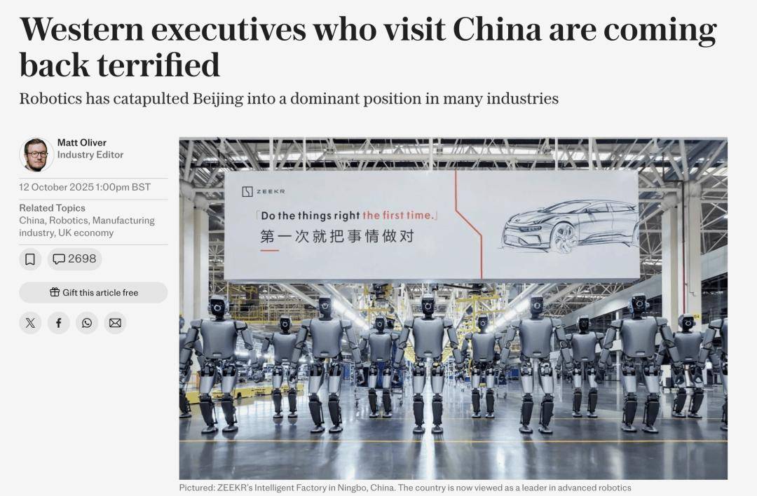 近日,英国《每日电讯报》的一篇深度报道,了浩繁企业高管正在参不雅了中国的“黑灯工场”后,遍及感遭到的一种复杂情感——。