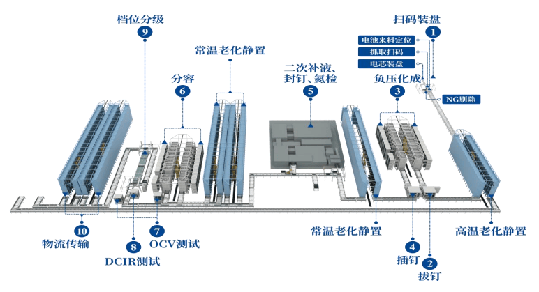 公司目前发卖的整线产物以方形电池的后处置从动化出产线为从,以该整线产物为例,引见公司锂电池后处置从动化出产线的结构、工艺流程以及焦点设备如下!
