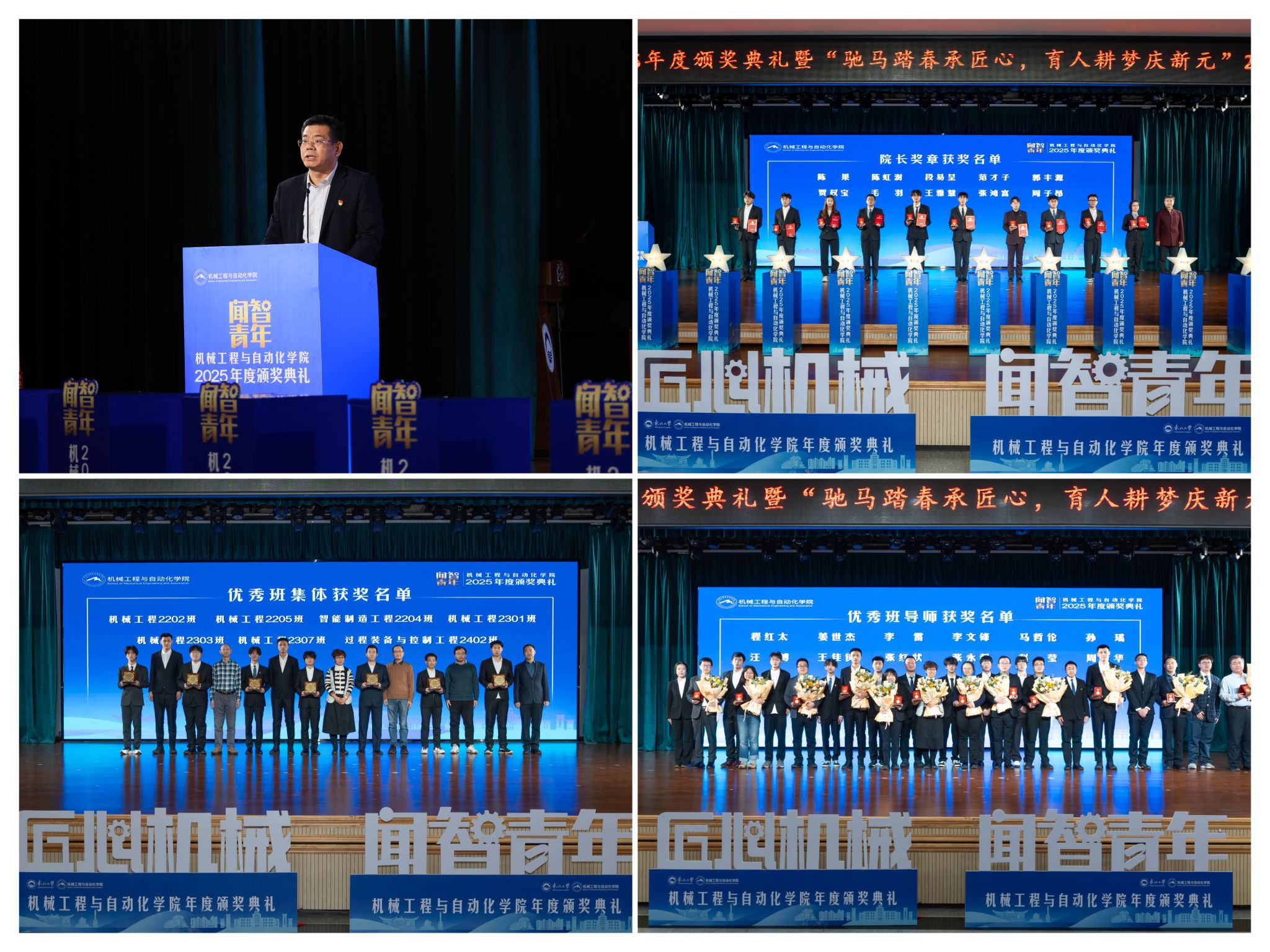 学院党委郝建山正在致辞中系统回首了一年来学院取得的主要成绩。学院积极办事国度计谋,投身深度金属矿智能开采纳配备全国沉点尝试室扶植,并正在环节科研范畴实现标记性冲破,获得国度严沉专项支撑。同时,学院成功引进增材取激光制制范畴领军团队,稳步推进学校新增学位点扶植,为久远成长奠基根本。正在人才培育方面,学院学子表示凸起,研究生学术丰盛,结业生就业率持续连结高位,郝建山阐释了“闻智青年”品牌的育人内涵,勉励全体师生胸怀“国之大者”,将小我成长融入“制制强国”计谋,过硬本事,怯于立异创制,勤奋成为担任平易近族回复大任的时代新人。副院长罗忠表扬决定。颁环节分三轮顺次进行。起首颁布的是“院长章”,刘云飞为毛羽等10名正在专业进修、科技立异、社会实践等方面表示杰出的学生颁布章。班导师代表为7个正在班风、学风及凝结力扶植中成效显著的班级颁。最初,仪式聚焦育人一线论理学生代表向获评“优良班导师”的教员们献上鲜花取荣誉证书,表达诚挚感谢感动。“院长章”获得者代表毛羽连系科研竞赛取意愿办事履历,讲述了“道阻且长,行则将至”的成长;“优良班集体”获代表豆煜轩分享了班级凝心聚力、共建优秀学风的活泼经验。正在“闻智匠心 共话青蓝”出格环节,从分歧视角展示了师生间思惟引领、学业互帮、讲授相长的温情互动,彰显了育人一线的深挚交谊取结实成效。据悉,“闻智青年”是机械工程取从动化学院出力打制的文化育人品牌。本次颁仪式既是年度的集中展现,也是典型树立、激励朝上进步的主要平台,旨正在指导全体学生以先辈为楷模,坚想、夯实专业根本、锻制立异能力,全球视野取创制活力的杰出工程人才,为学校“双一流”扶植和高质量成长注入芳华力量。